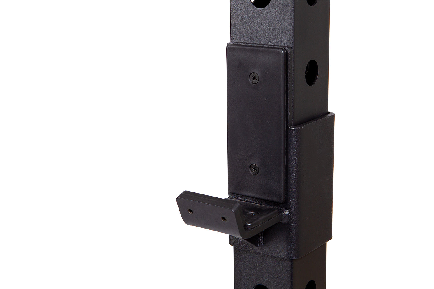 Die integrierte Klimmzugstange ermöglicht zusätzliche Trainingsvarianten mit dem eigenen Körpergewicht. Durch die offene Bauweise bleibt der Trainingsraum flexibel nutzbar. J-Hooks zur Hantelablage sind enthalten.